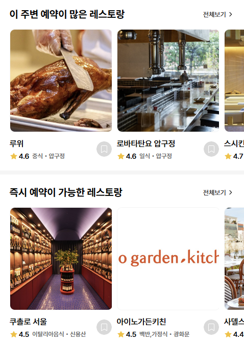 예약을 원할 경우, 매장 상세 페이지에서 날짜와 인원을 선택하고 가능한 시간대를 확인합니다. 일부 레스토랑은 바 좌석, 룸, 홀 등 좌석 타입을 선택할 수도 있으며, 예약금이 필요한 매장의 경우 예약금 결제 후에야 예약이 확정됩니다.